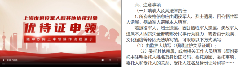 解读区分了“网上申领”和“线下申领”两种申领途径,列明了申请人范围、优待证类型、申请方式、申请材料等基本信息,明确了填表人委托他人填写等特殊情况的注意事项。同时,还特别提醒申请人如何线上查询进展动态,申领步骤提供了大量实际操作中的示意图,便于申请人“按图索骥”。