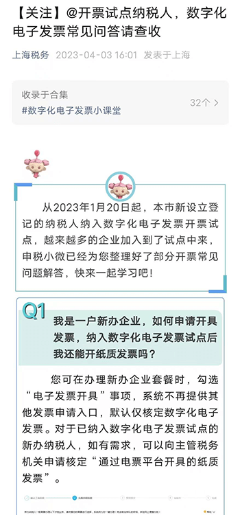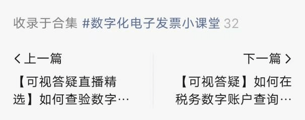 政策解读下方附带“数字化电子发票小课堂”合集链接,收录了有关数字化电子发票的相关政策、解读、课程和业务要求,有利于读者快速搜索并获得数字化电子发票的相关知识。“#数字化电子发票小课堂”的合集对于通过微信渠道发布政策和进行系列解读提供了优秀的范本。