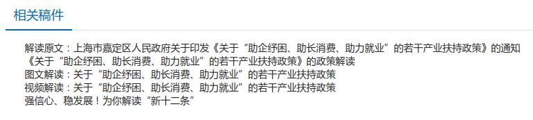 此外,解读中提到“详细请参考《嘉定区技术改造专项扶持办法》嘉经[2021]16号文件”“后续还将进一步制定出台相关政策实施细则”。为便利公众快速获取相关政策和配套细则,建议将问答中提到的参考文件及后续配套细则,作为关联稿件呈现。