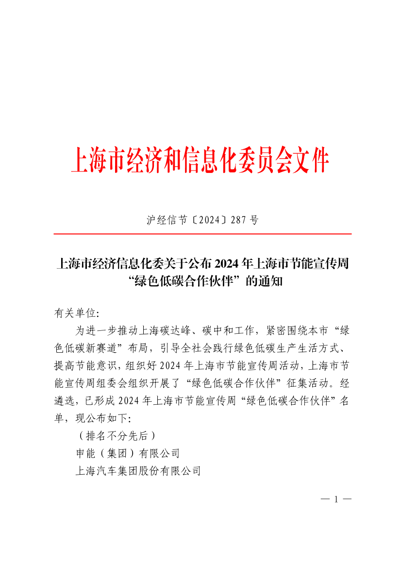 为进一步推动上海碳达峰、碳中和工作,紧密围绕本市“绿色低碳新赛道”布局,引导全社会践行绿色低碳生产生活方式、提高节能意识,组织好2024年上海市节能宣传周活动,上海市节能宣传周组委会组织开展了“绿色低碳合作伙伴”征集活动。经遴选,已形成2024年上海市节能宣传周“绿色低碳合作伙伴”名单,现公布如下:
