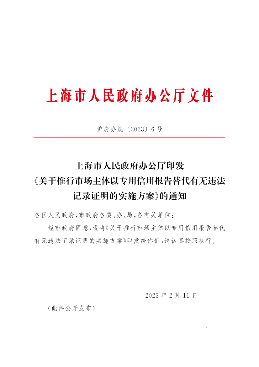 2023年3月1日起,在全市试行市场主体以专用信用报告替代在本市行政区域内23个领域(以下称“首批实施领域”)有无违法记录证明。