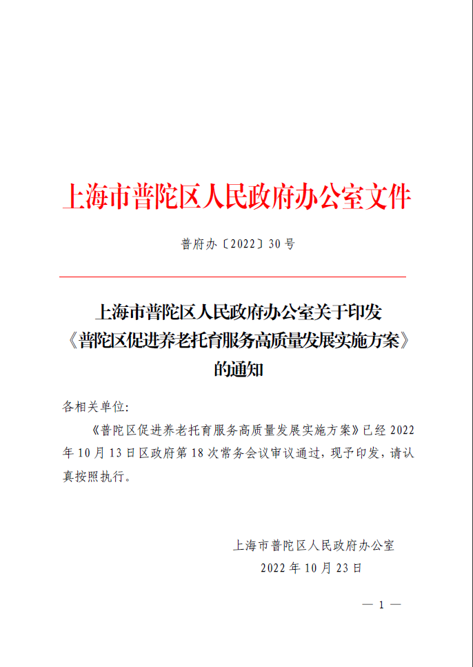 上海市普陀区人民政府办公室关于印发《普陀区促进养老托育服务高质量发展实施方案》的通知