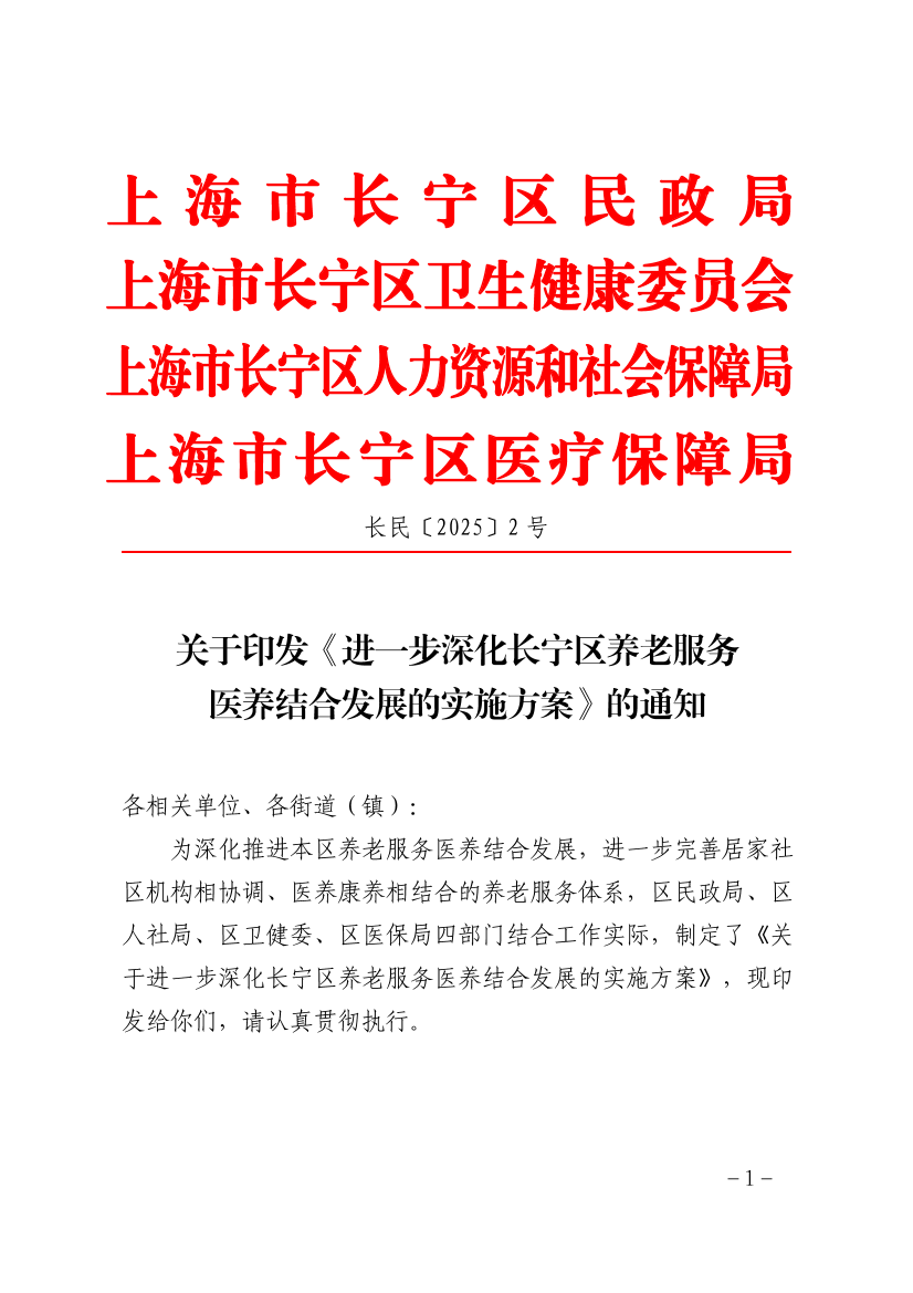 关于进一步深化长宁区养老服务医养结合发展的实施方案