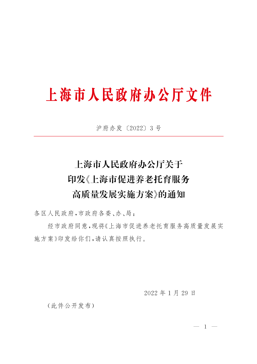 上海市人民政府办公厅关于印发《上海市促进养老托育服务高质量发展实施方案》的通知