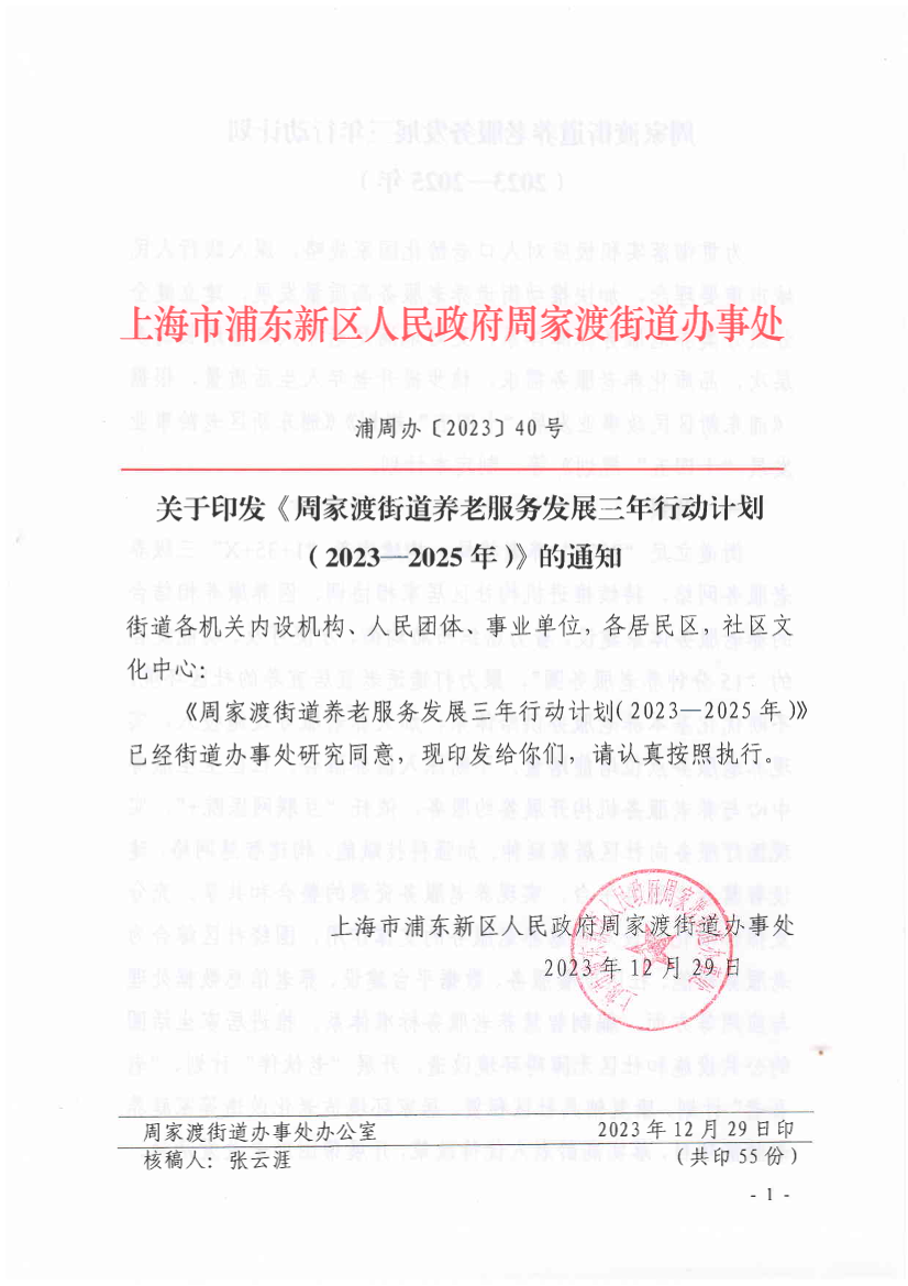 关于印发《周家渡街道养老服务发展三年行动计划(2023—2025年)》的通知