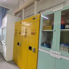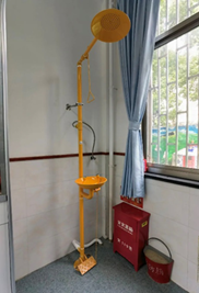 在化学实验室准备室内,配备了双人双锁才能打开的毒品柜、提供标准通风系统的通风柜等,以保障人员安全。化学实验室内也配备了应急冲淋装置,该装置能迅速减轻当化学液体、有毒物质溅到身体、脸和眼睛时,对人员的危害程度。