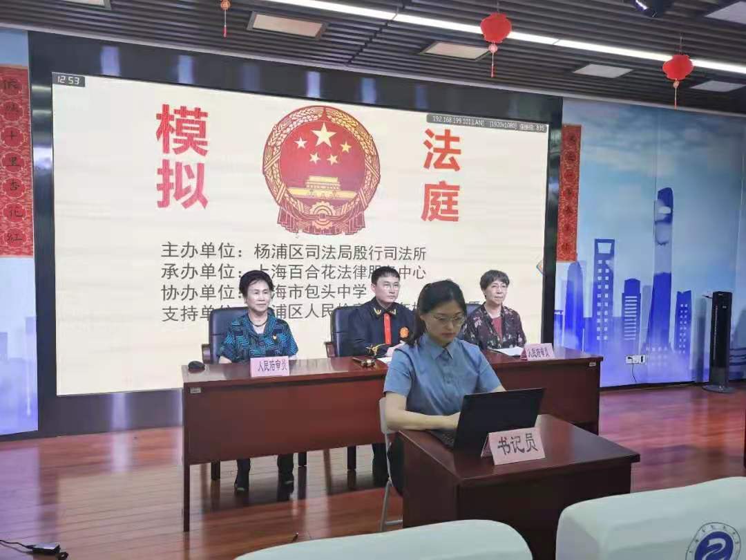 2021年6月11日下午,殷行街道第二期模拟法庭活动在上海市依法治校示范校包头中学公开举行,模拟法庭“全要素”还原了庭审程序环节:开庭阶段严谨认真,材料充分;法庭调查条理清晰,紧凑细致;法庭辩论激烈紧张,举证胡力,呈现了一台严谨、规范、流畅的法庭审理场景,原示了程序合法、公正正义的司法实践。