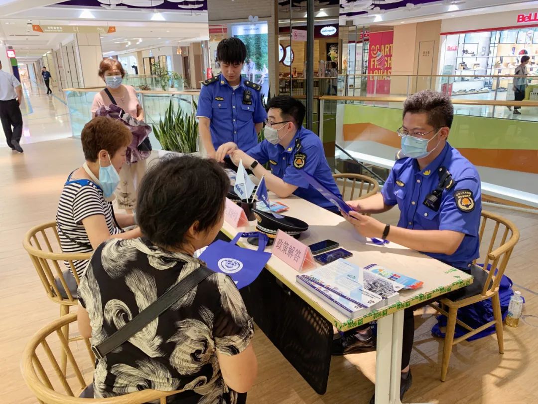 在各中队分会场,为了让市民更真切地感受城管中队工作模式和执法内容,中队组织了设摊咨询、参观邀请、装备展示、案例讲解等活动,受到广泛好评。