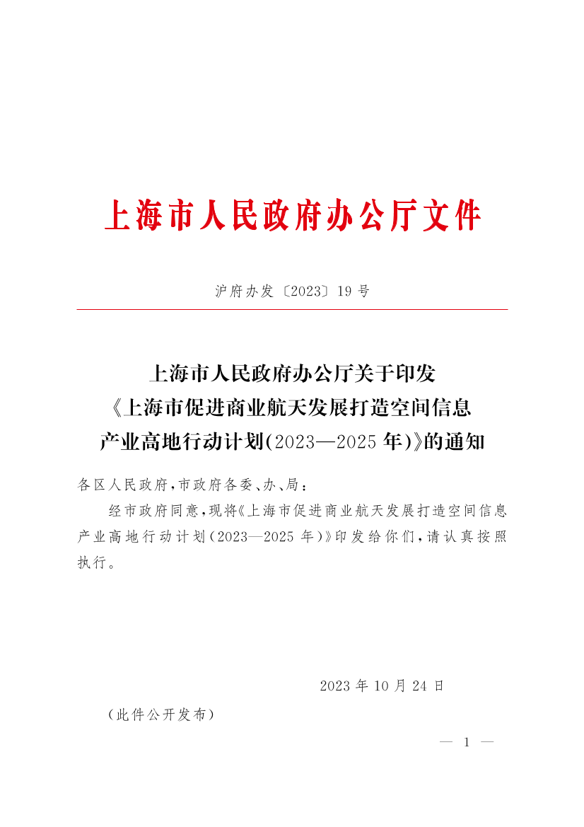 上海市人民政府办公厅关于印发《上海市促进商业航天发展打造空间信息产业高地行动计划(2023—2025年)》的通知