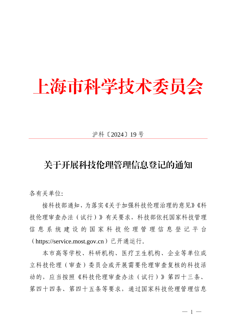 接科技部通知,为落实《关于加强科技伦理治理的意见》《科技伦理审查办法(试行)》有关要求,科技部依托国家科技管理信息系统建设的国家科技伦理管理信息登记平台(https://service.most.gov.cn)已开通运行。