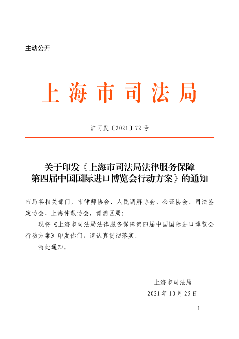现将《上海市司法局法律服务保障第四届中国国际进口博览会行动方案》印发你们,请认真贯彻落实。