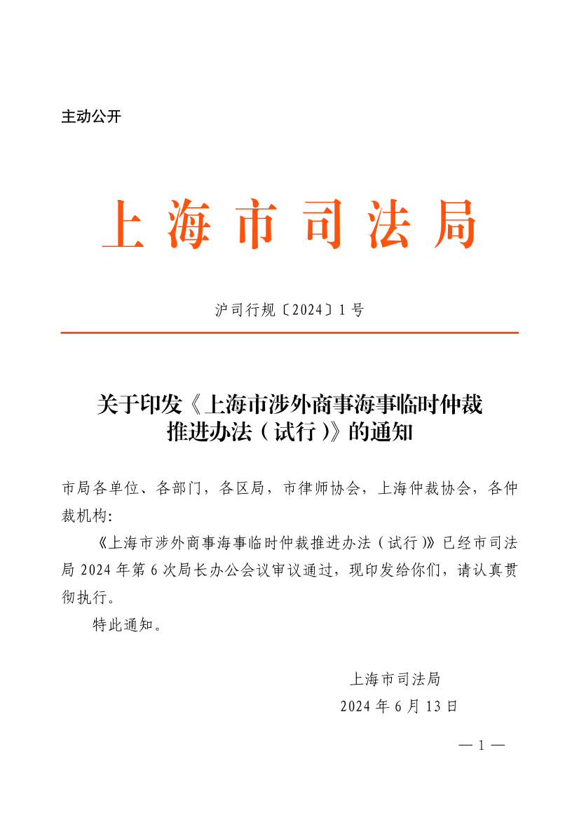 沪司行规〔2024〕1号