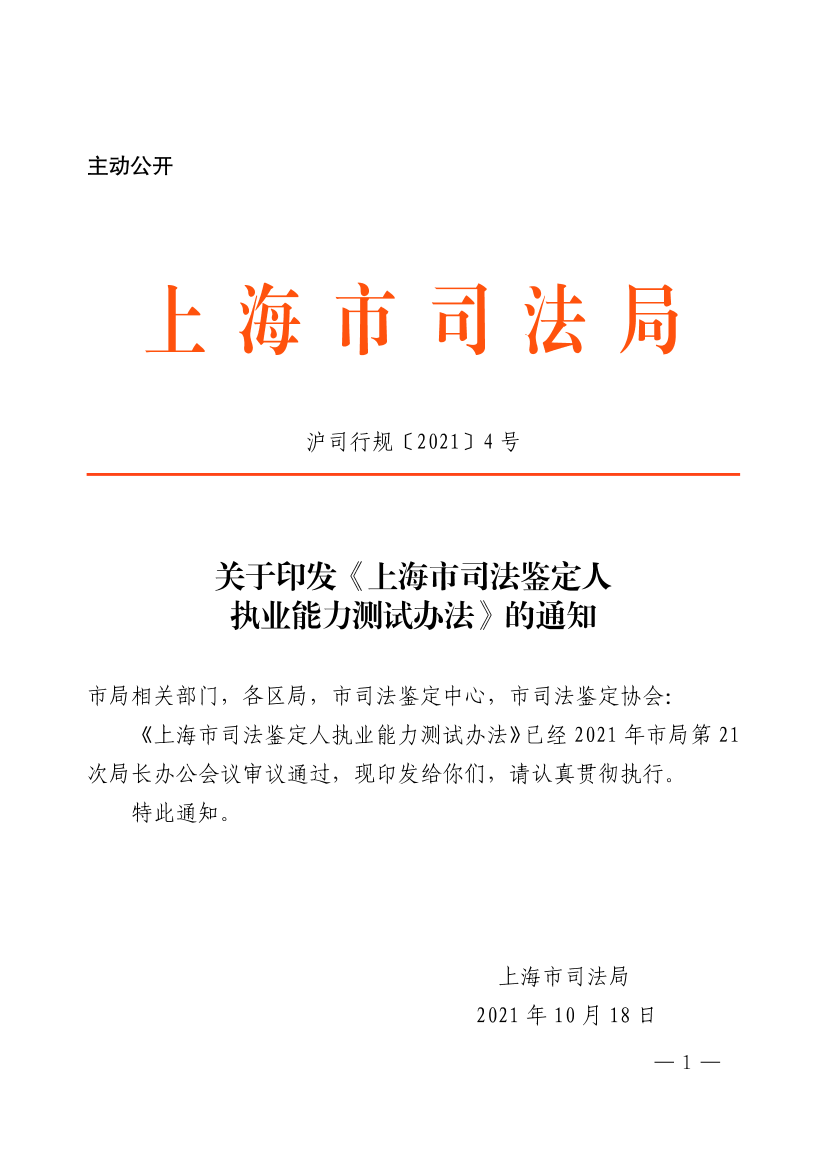 关于印发《上海市司法鉴定人执业能力测试办法》的通知