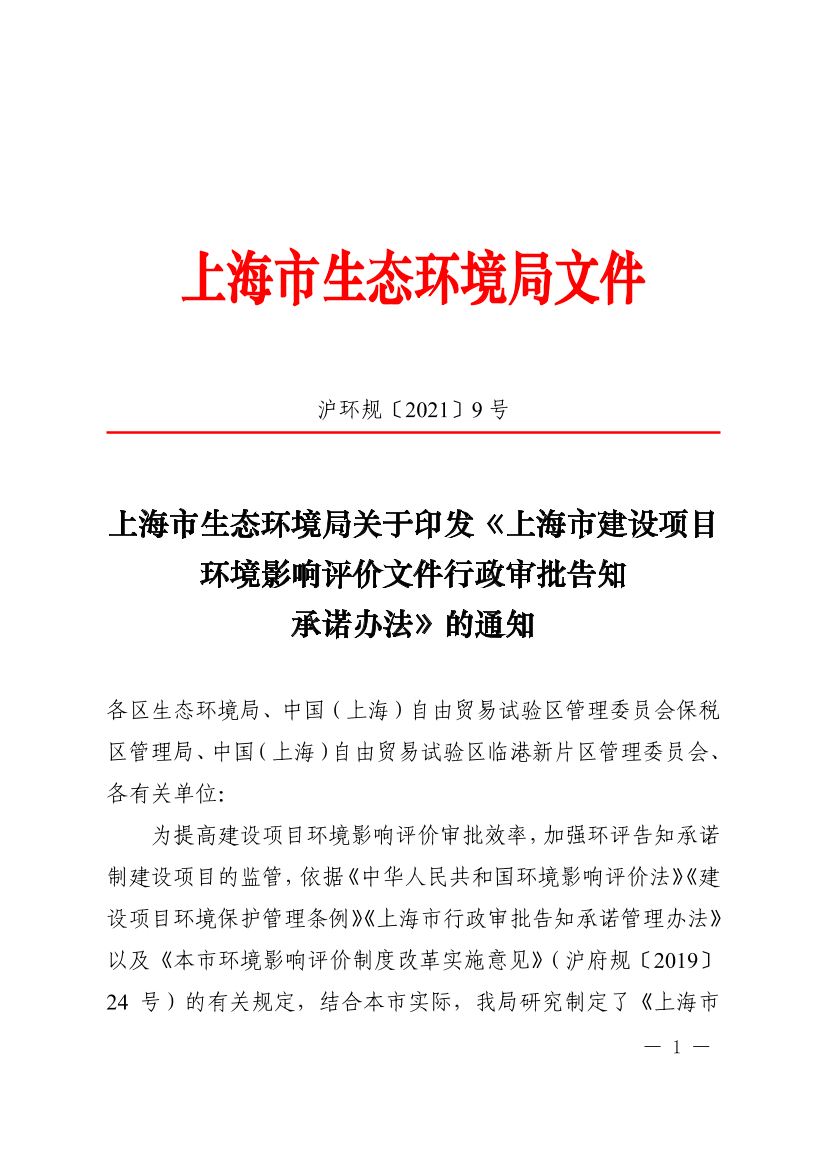 上海市建设项目环境影响评价文件行政审批告知承诺办法