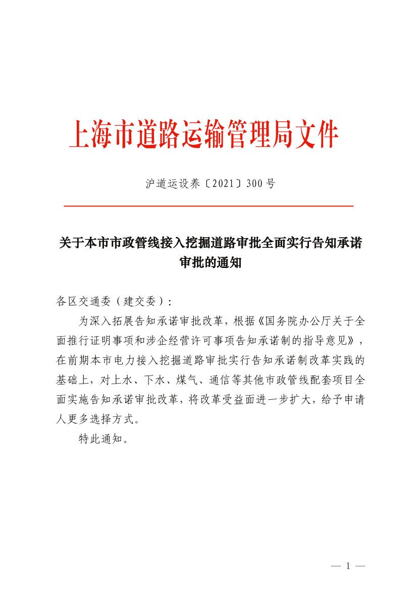 1.上海市市政管线接入挖掘城市道路许可告知承诺实施细则