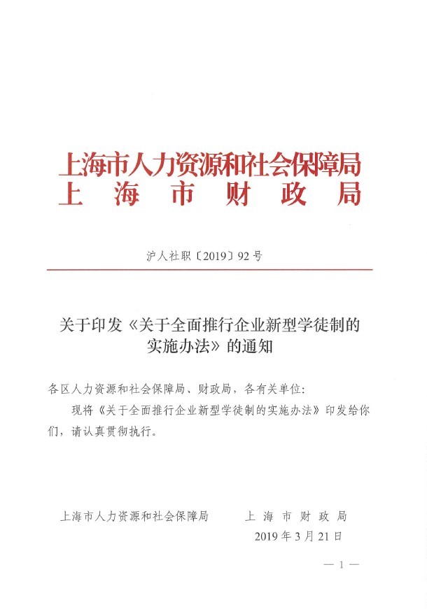 为加快提升我市劳动者职业技能水平,推进技能人才队伍建设,根据国家人力资源社会保障部、财政部《关于全面推行企业新型学徒制的意见》(人社部发〔2018〕66号),以及上海市委办公厅、上海市政府办公厅印发的《技能提升行动计划(2018—2021年)》(沪委办发〔2018〕24号),本市将全面推行企业新型学徒制工作,并制定如下实施办法。