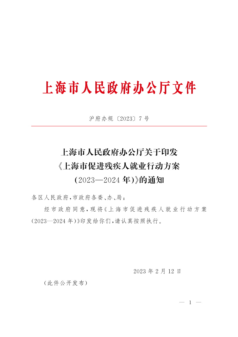 上海市人民政府办公厅关于印发《上海市促进残疾人就业行动方案(2023—2024年)》的通知