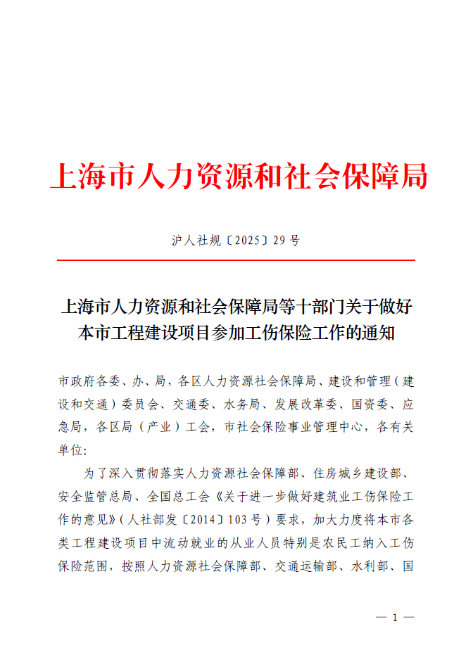 为了深入贯彻落实人力资源社会保障部、住房城乡建设部、安全监管总局、全国总工会《关于进一步做好建筑业工伤保险工作的意见》(人社部发〔2014〕103号)要求,加大力度将本市各类工程建设项目中流动就业的从业人员特别是农民工纳入工伤保险范围,按照人力资源社会保障部、交通运输部、水利部、国家能源局、国家铁路局、中国民用航空局《关于铁路、公路、水运、水利、能源、机场工程建设项目参加工伤保险工作的通知》(人社部发〔2018〕3号)精神,现就进一步做好本市各类工程建设项目参加工伤保险工作通知如下: