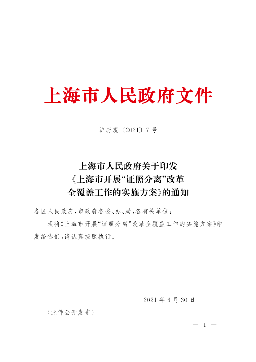 现将《上海市开展“证照分离”改革全覆盖工作的实施方案》印发给你们,请认真按照执行。