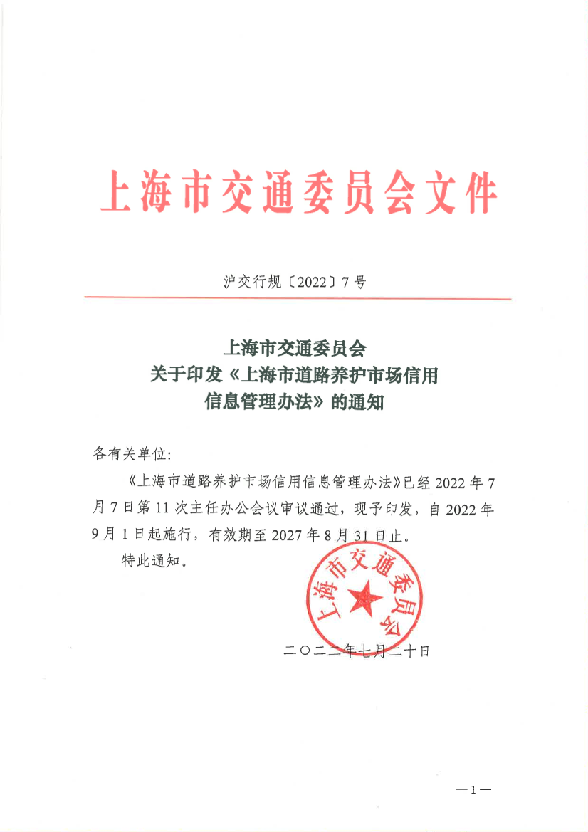 关于印发《上海市道路养护市场信用信息管理办法》的通知