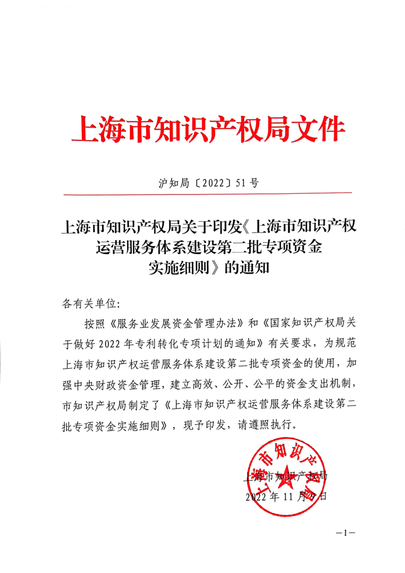 上海市知识产权运营服务体系建设第二批专项资金实施细则
