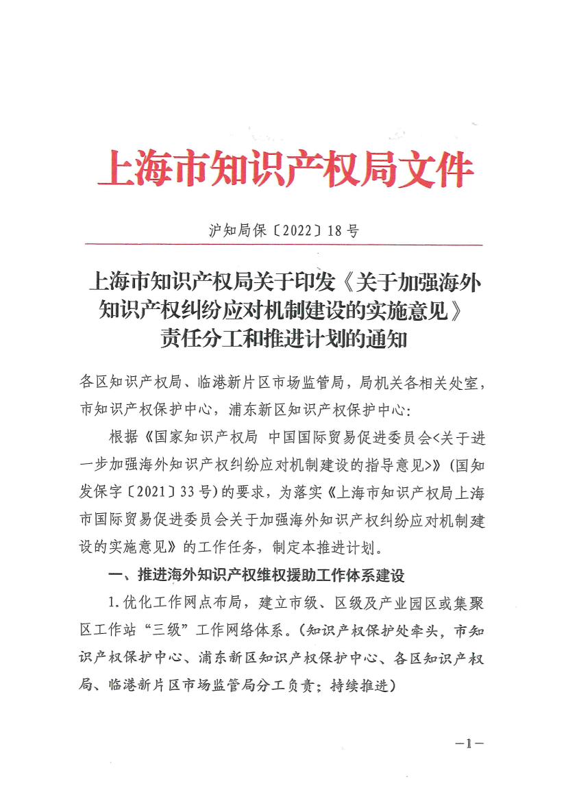 根据《国家知识产权局 中国国际贸易促进委员会<关于进一步加强海外知识产权纠纷应对机制建设的指导意见>》(国知发保字〔2021〕33号)的要求,为落实《上海市知识产权局上海市国际贸易促进委员会关于加强海外知识产权纠纷应对机制建设的实施意见》的工作任务,制定本推进计划。