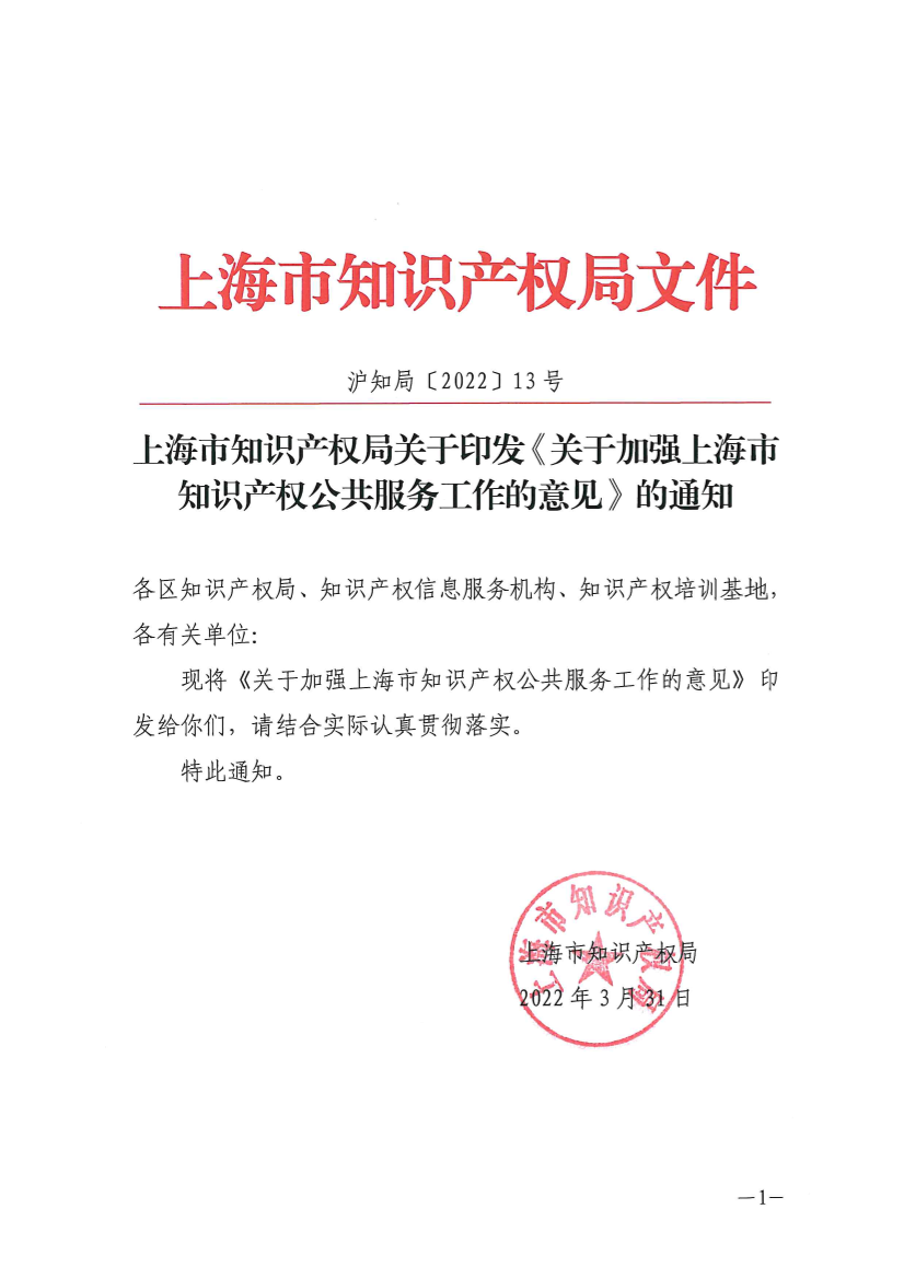 关于加强上海市知识产权公共服务工作的意见