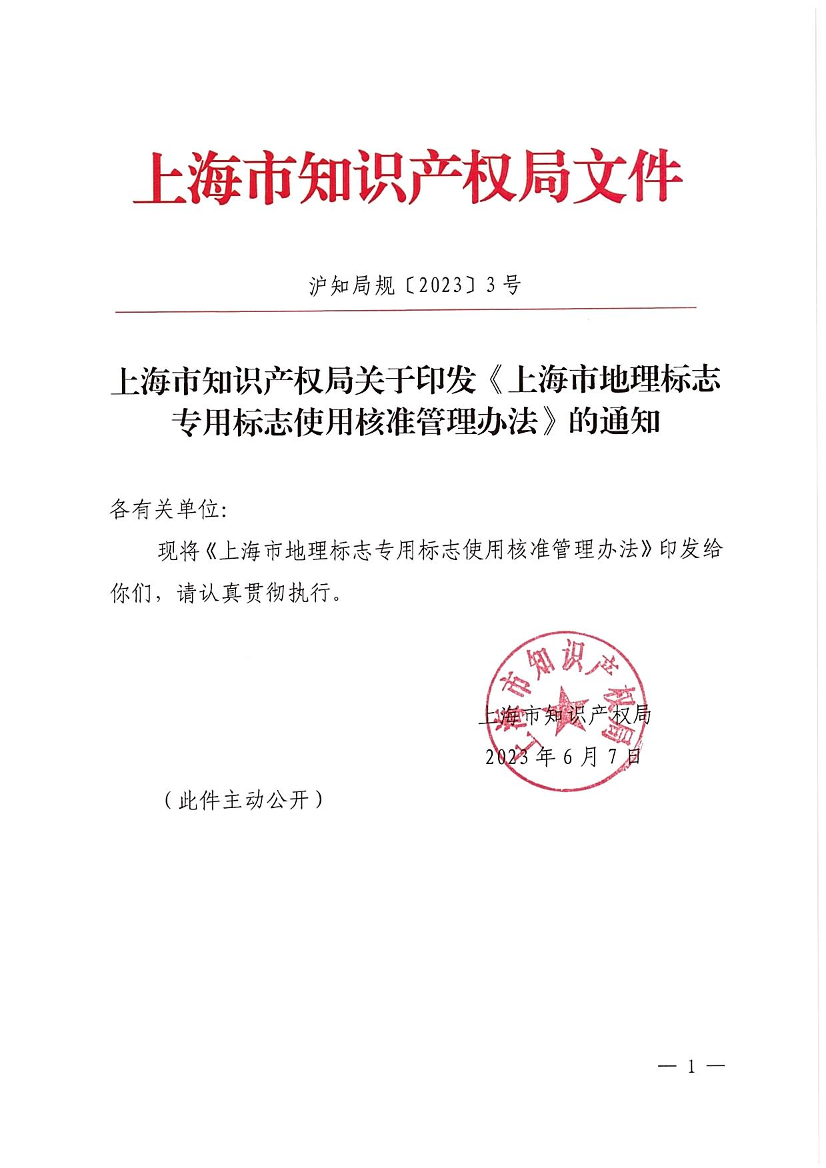 现将《上海市地理标志专用标志使用核准管理办法》印发给你们,请认真贯彻执行。