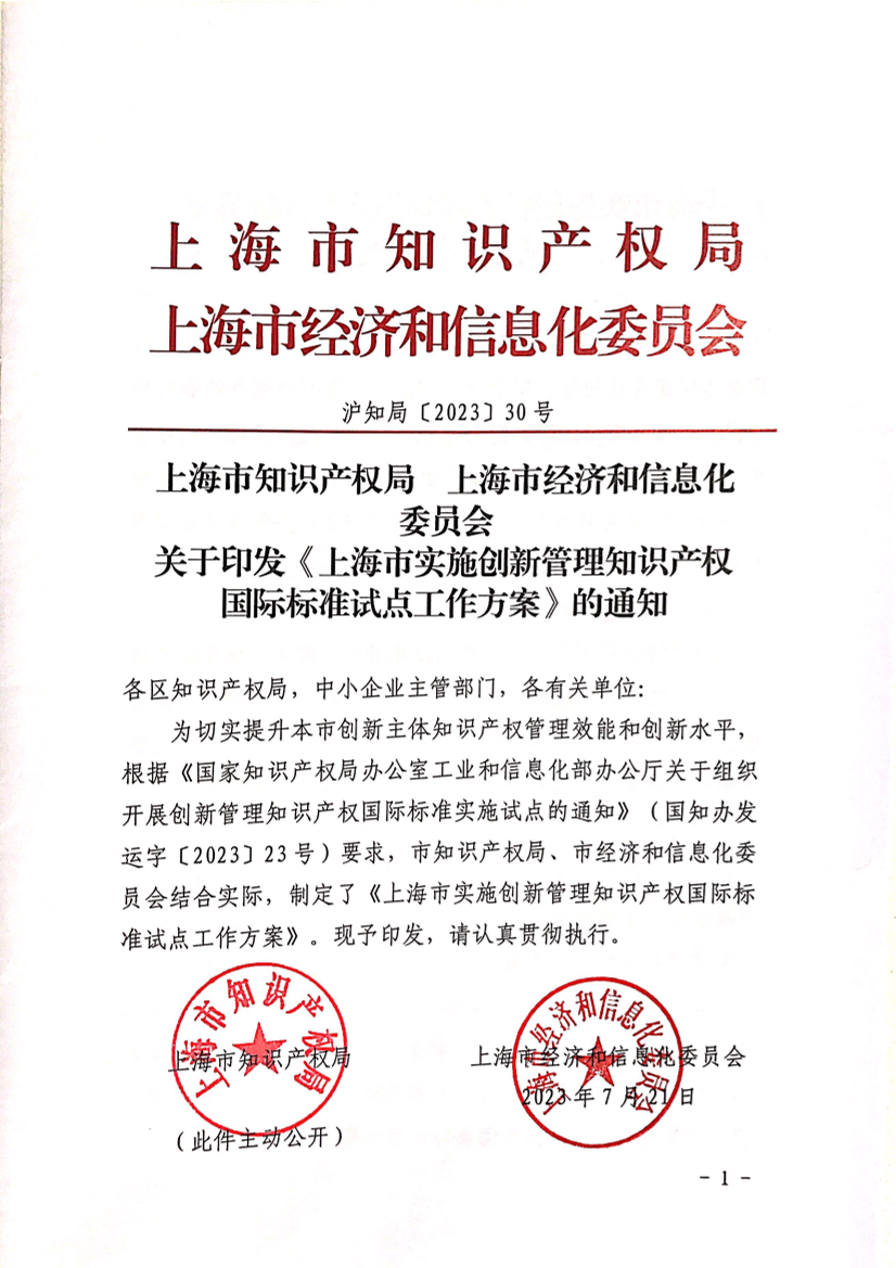 2023年,以上海市知识产权运营体系建设项目承担单位、2022年度国家知识产权优势示范企业、2022年度上海市专利工作示范企业以及部分专精特新重点“小巨人”企业为首批试点企业(名单附后),开展ISO56005国际标准实施试点。