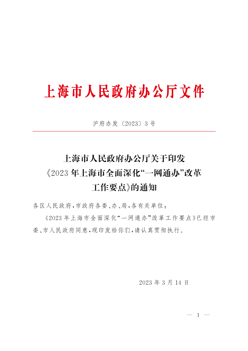 上海市人民政府办公厅关于印发《2023年上海市全面深化“一网通办”改革工作要点》的通知