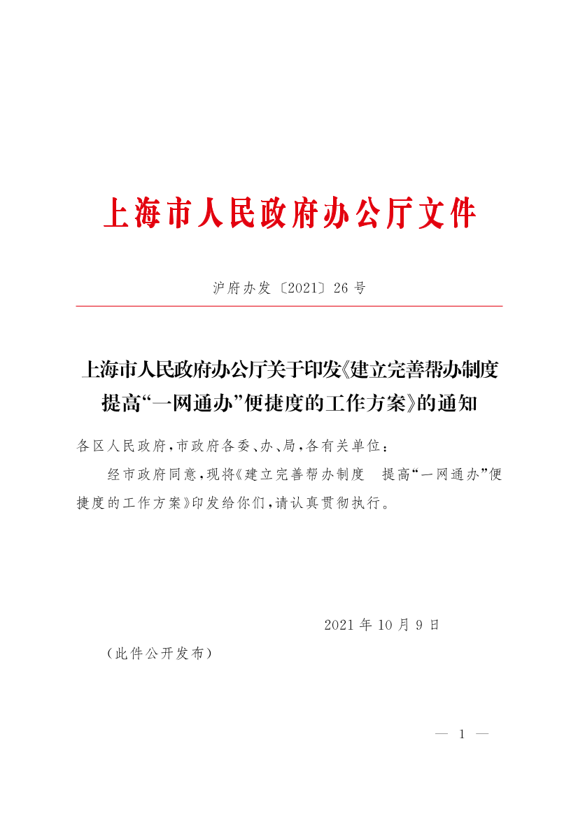 上海市人民政府办公厅关于印发《建立完善帮办制度提高“一网通办”便捷度的工作方案》的通知