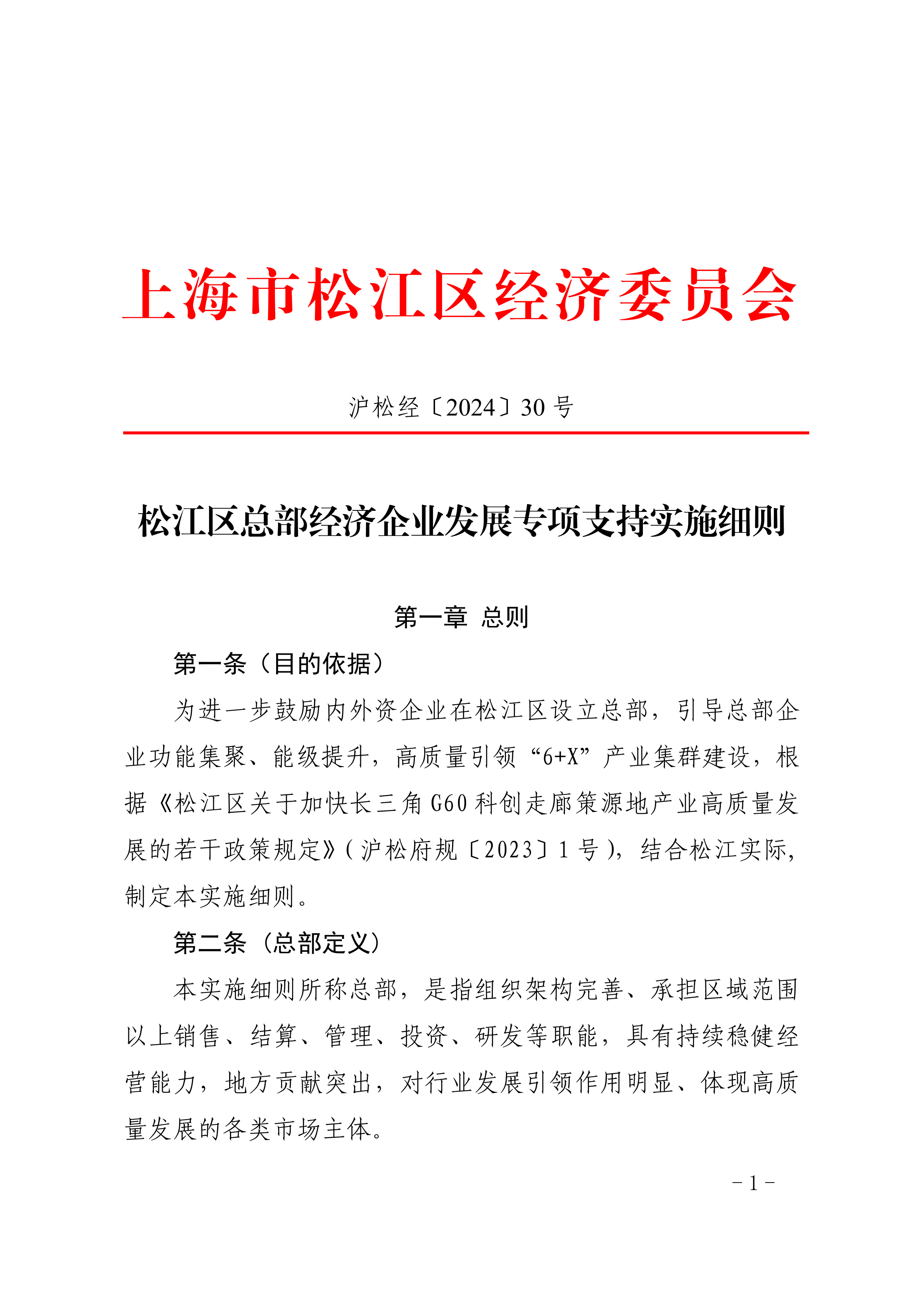为进一步鼓励内外资企业在松江区设立总部,引导总部企业功能集聚、能级提升,高质量引领“6+X”产业集群建设,根据《松江区关于加快长三角G60科创走廊策源地产业高质量发展的若干政策规定》(沪松府规〔2023〕1号),结合松江实际,制定本实施细则。