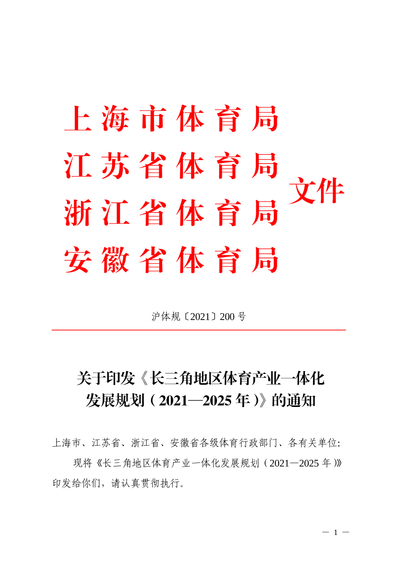 长三角地区体育产业一体化发展规划(2021—2025年)