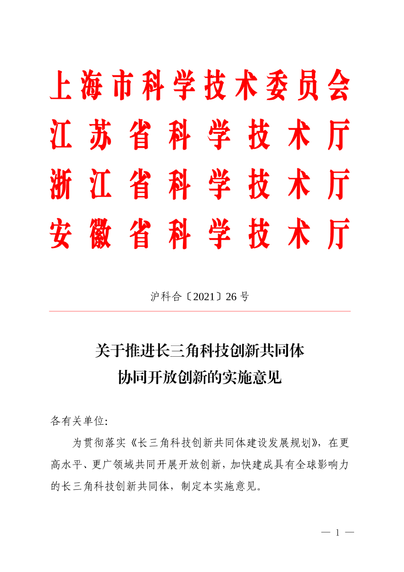 为贯彻落实《长三角科技创新共同体建设发展规划》,在更高水平、更广领域共同开展开放创新,加快建成具有全球影响力的长三角科技创新共同体,制定本实施意见。