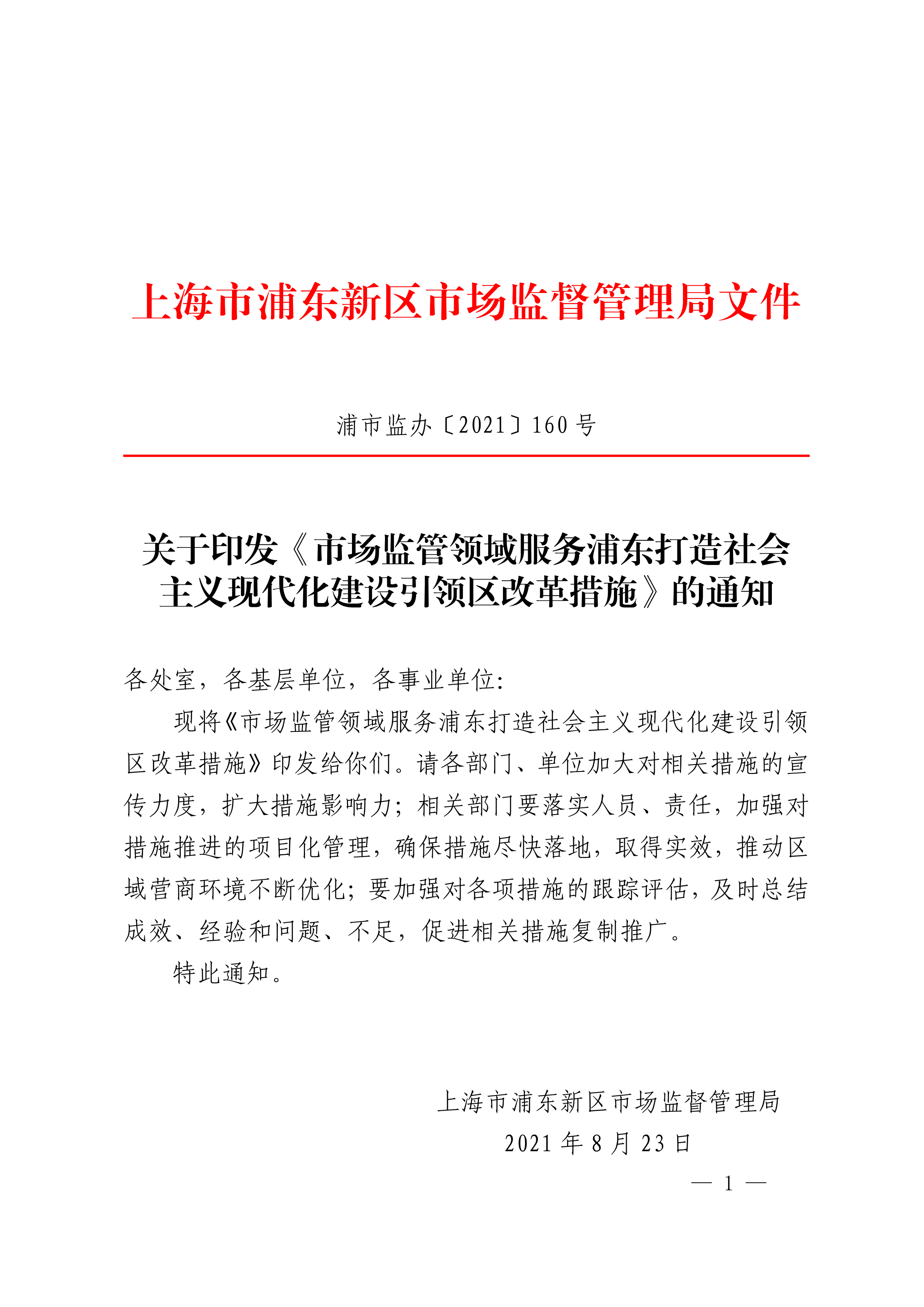 市场监管领域服务浦东打造社会主义现代化建设引领区改革措施