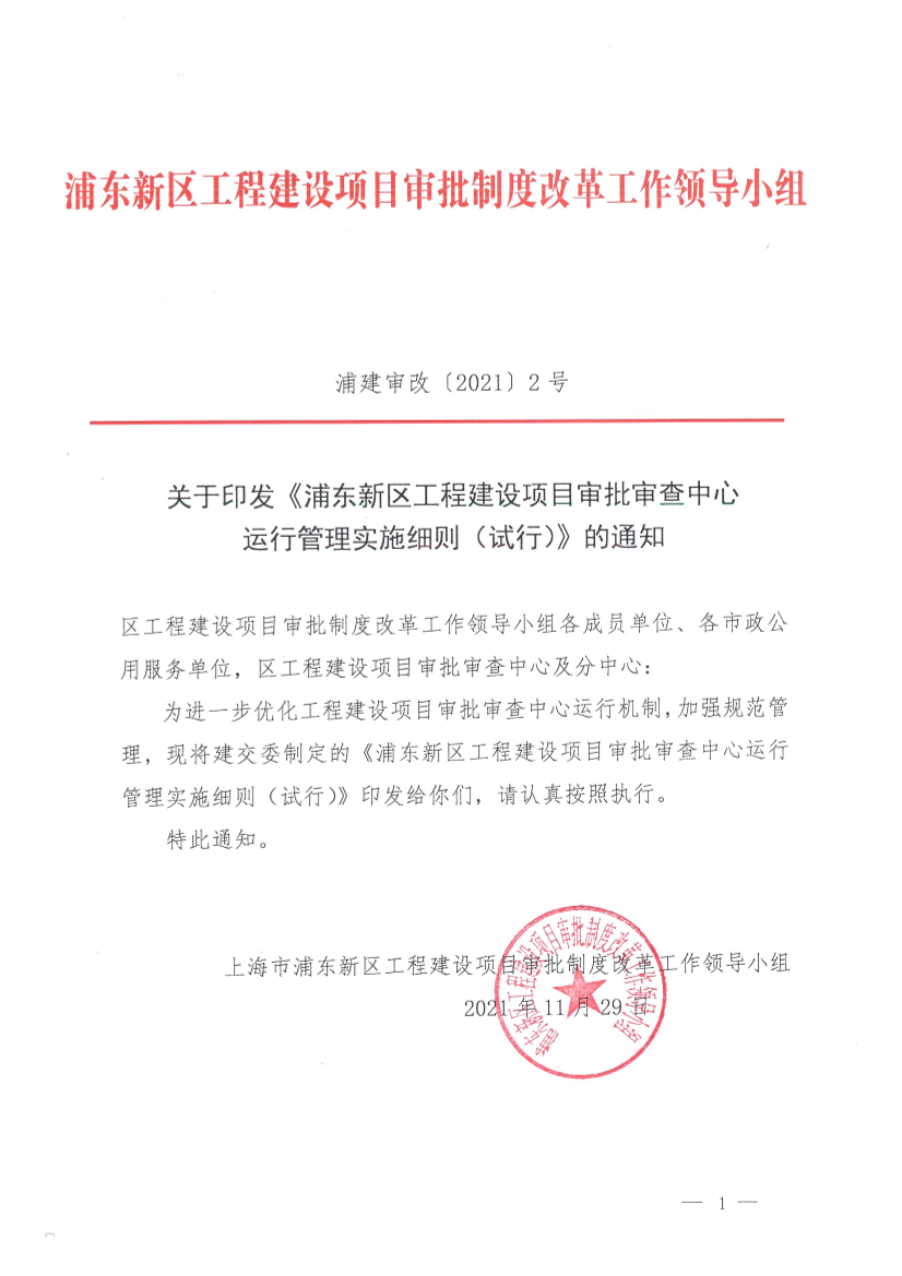 为贯彻落实《上海市优化营商环境条例》《关于进一步优化营商环境加强市、区(管委会)工程建设项目审批审查中心建设的实施意见》(沪建审改〔2021〕1号)文件精神,深入推动行政审批资源整合,推行一站式服务改革,在前期浦东新区社会投资项目审批审查中心实践探索的基础上,进一步明确浦东新区工程建设项目审批审查中心运行管理具体要求,结合浦东实践,制定本实施细则。