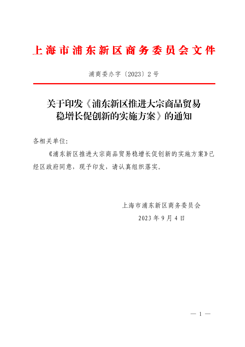 浦东新区推进大宗商品贸易稳增长促创新的实施方案