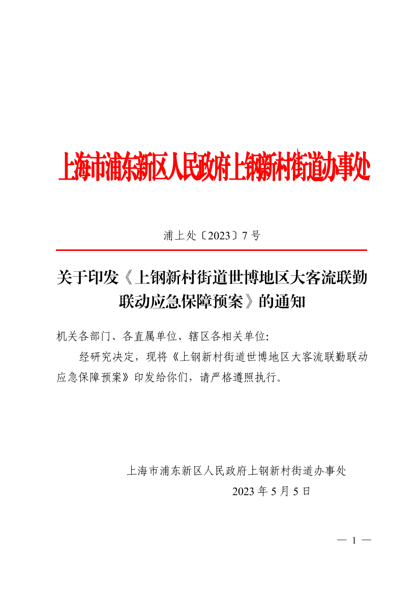 关于印发《上钢新村街道世博地区大客流联勤联动应急保障预案》的通知