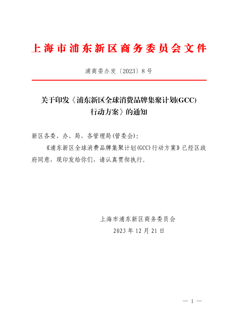 浦东新区全球消费品牌集聚计划(GCC)行动方案