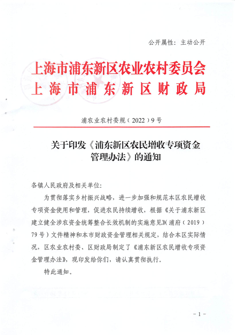 关于印发《浦东新区农民增收专项资金管理办法》的通知