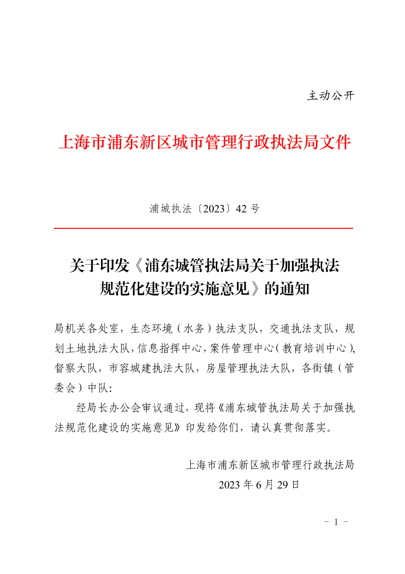 浦东城管执法局关于加强执法规范化建设的实施意见