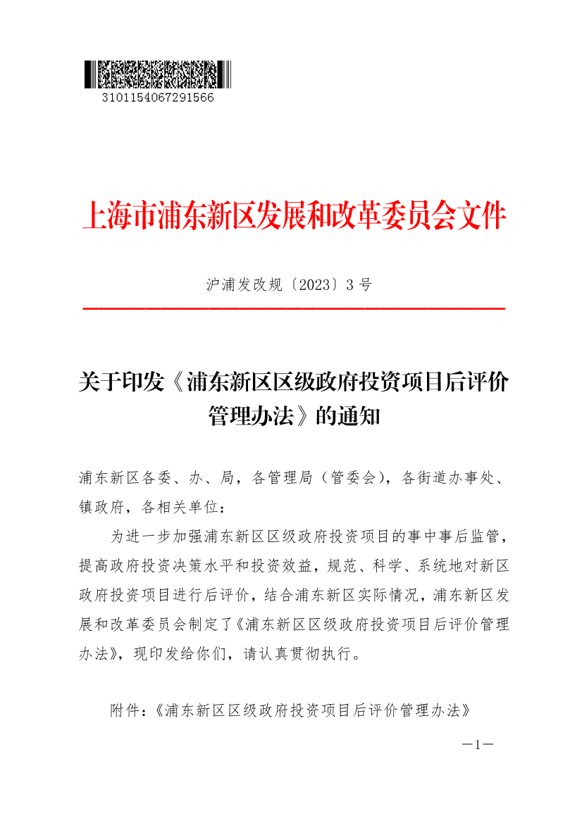 附件:《浦东新区区级政府投资项目后评价管理办法》