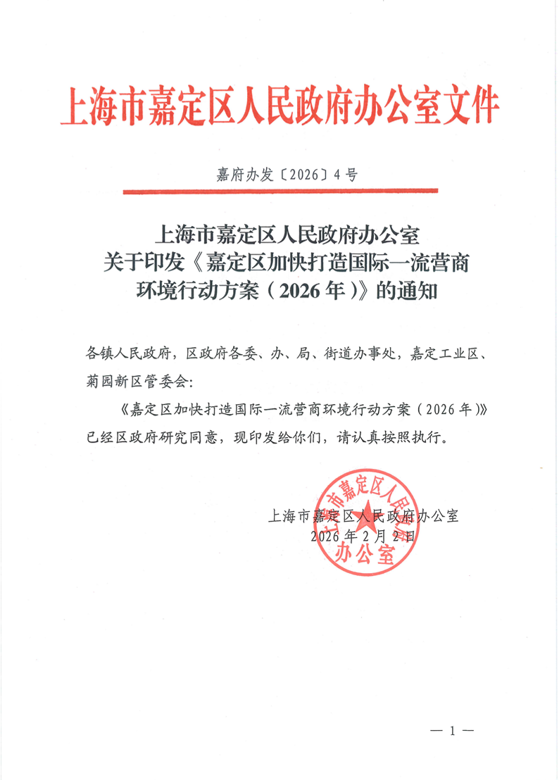 《嘉定区加快打造国际一流营商环境行动方案(2026年)》已经区政府研究同意,现印发给你们,请认真按照执行。