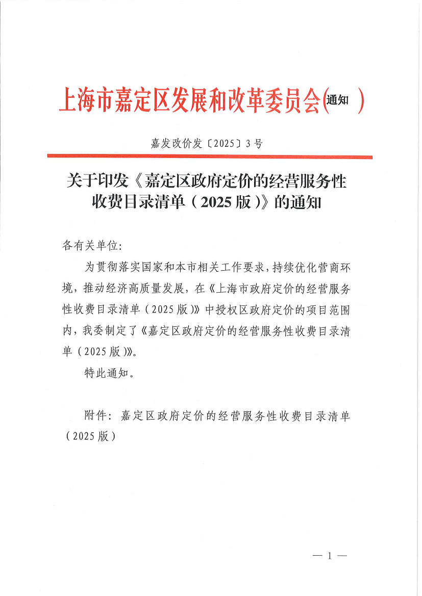 附件:嘉定区政府定价的经营服务性收费目录清单(2025版)