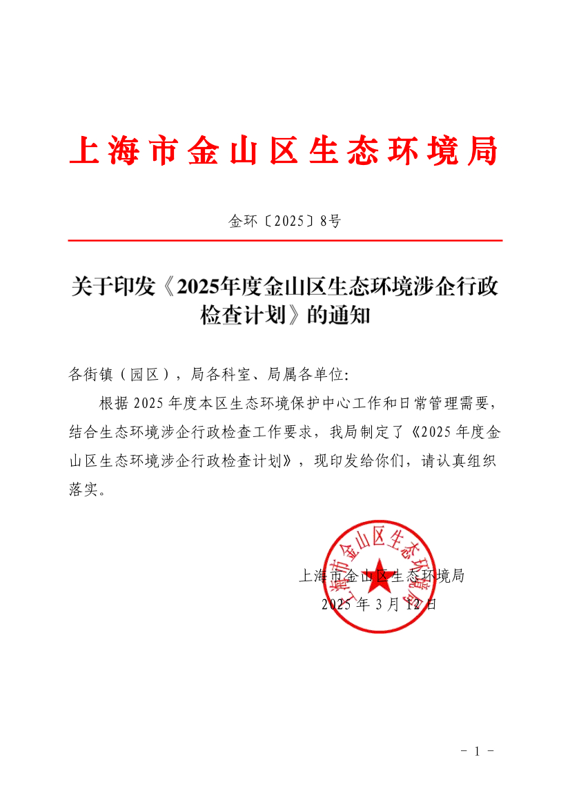 根据2025年度本区生态环境保护中心工作和日常管理需要,结合生态环境涉企行政检查工作要求,我局制定了《2025年度金山区生态环境涉企行政检查计划》,现印发给你们,请认真组织落实。