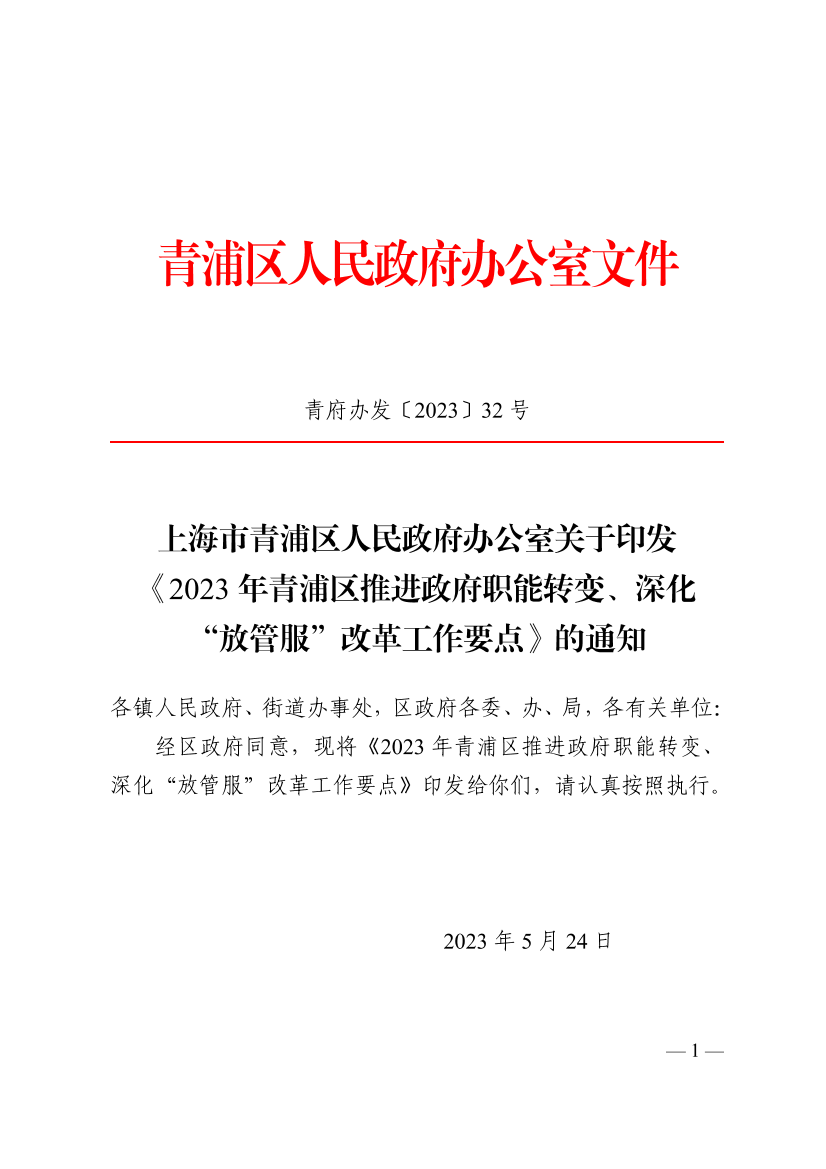 经区政府同意,现将《2023年青浦区推进政府职能转变、深化“放管服”改革工作要点》印发给你们,请认真按照执行。