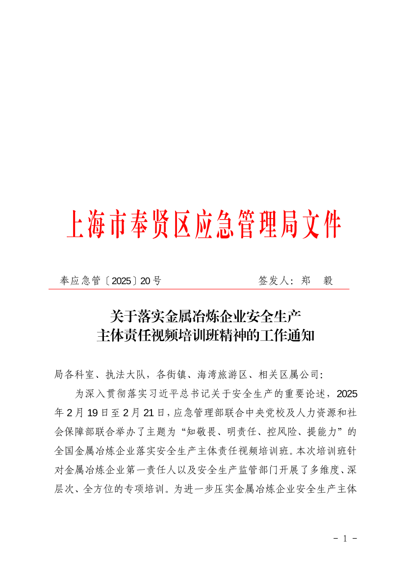 为深入贯彻落实习近平总书记关于安全生产的重要论述,2025年2月19日至2月21日,应急管理部联合中央党校及人力资源和社会保障部联合举办了主题为“知敬畏、明责任、控风险、提能力”的全国金属冶炼企业落实安全生产主体责任视频培训班。本次培训班针对金属冶炼企业第一责任人以及安全生产监管部门开展了多维度、深层次、全方位的专项培训。为进一步压实金属冶炼企业安全生产主体责任,全面加强风险防控意识,提高安全管理能力,现将落实本次培训班精神的有关工作通知如下: