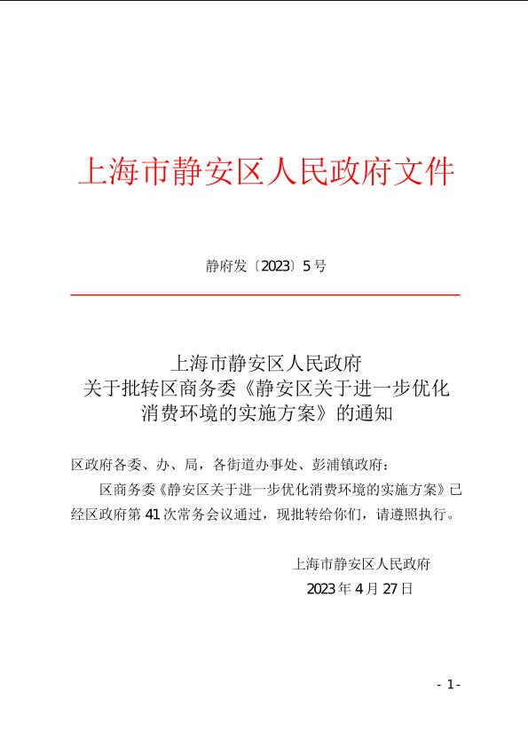 区商务委《静安区关于进一步优化消费环境的实施方案》已经区政府第41次常务会议通过,现批转给你们,请遵照执行。