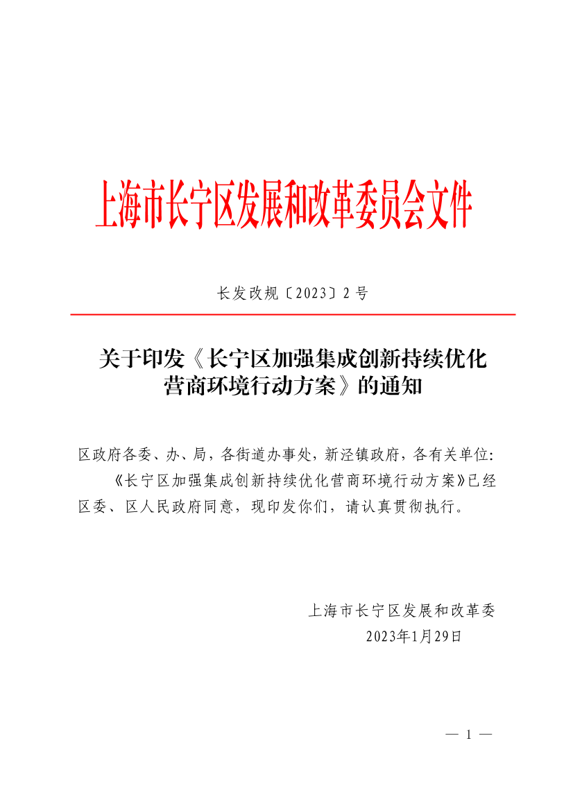 为加快推进本区营商环境建设,促进落实市政府《上海市加强集成创新持续优化营商环境行动方案》政策,本行动方案自2023年1月29日起施行,有效期至2024年1月28日。