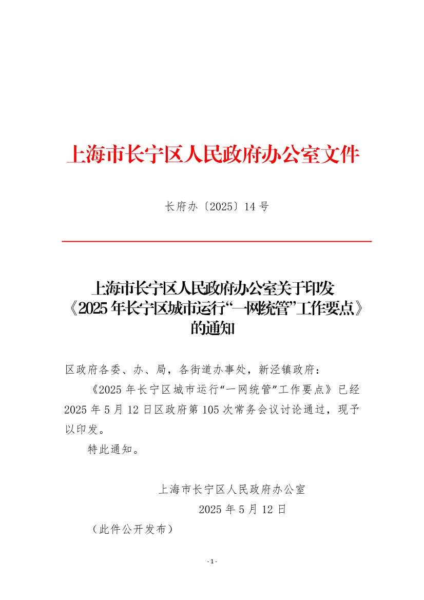 《2025年长宁区城市运行“一网统管”工作要点》已经2025年5月12日区政府第105次常务会议讨论通过,现予以印发。